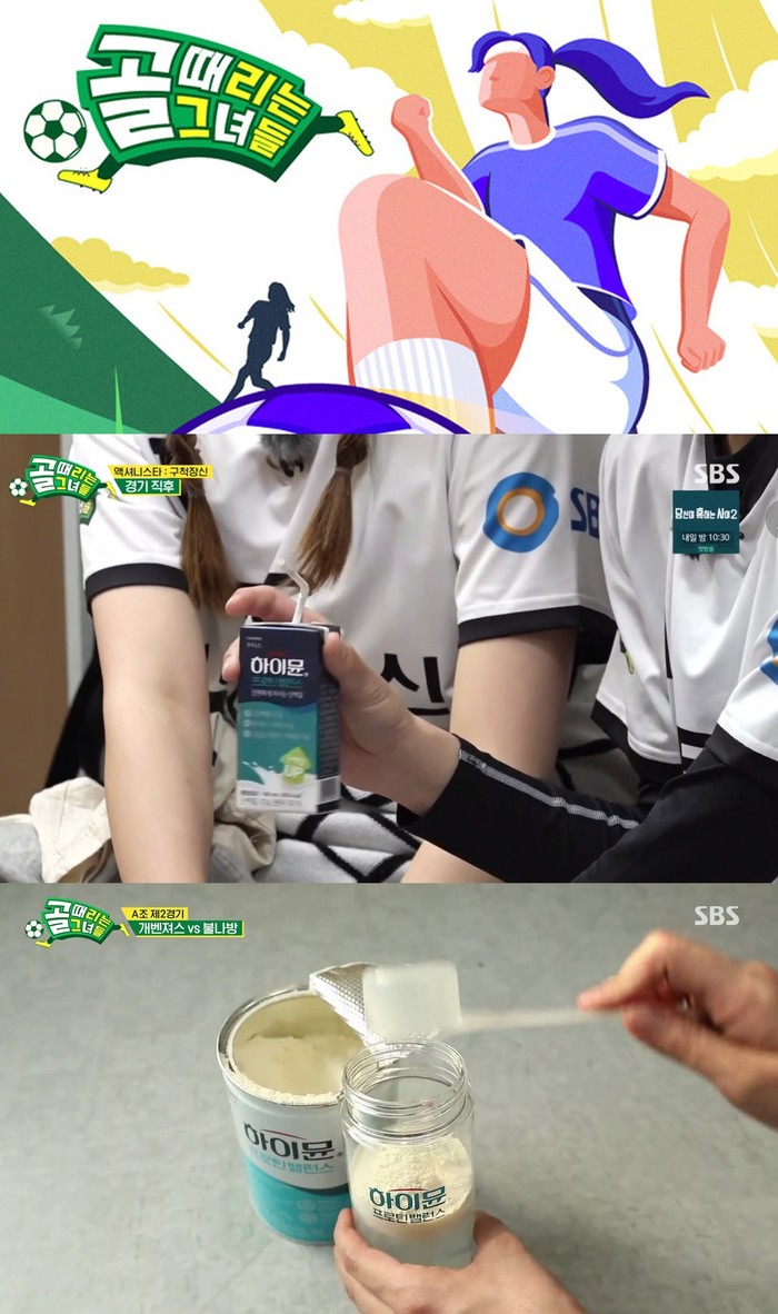 특히 11일 방영된 방송에서 FC구척장신팀의 일명 ‘차미네이터’ 차수민이 경기를 끝내고 락커룸에 앉아 ‘하이뮨 프로틴 밸런스 음료’를 마시는 모습이 포착됐다. 하이뮨 음료가 단백질과 칼슘 함량이 높아 식사 대용으로도 가능하다고 말한 차수민은 “우리가 경기 전에 이걸 마시고 뛰었어야 했다”며 아쉬워하는 모습을 보였다. 앞서 FC 개벤져스팀 조혜련도 락커룸에서 ‘하이뮨 프로틴 밸런스’를 물에 타서 마시며 힘을 내는 장면이 방송되기도 했다.