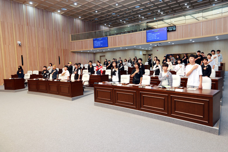 의정활동 체험 후 학생들은 “도의원 체험을 통해 생소했던 지방의회에 대해 배우는 소중한 시간이었다”고 소감을 밝혔다.