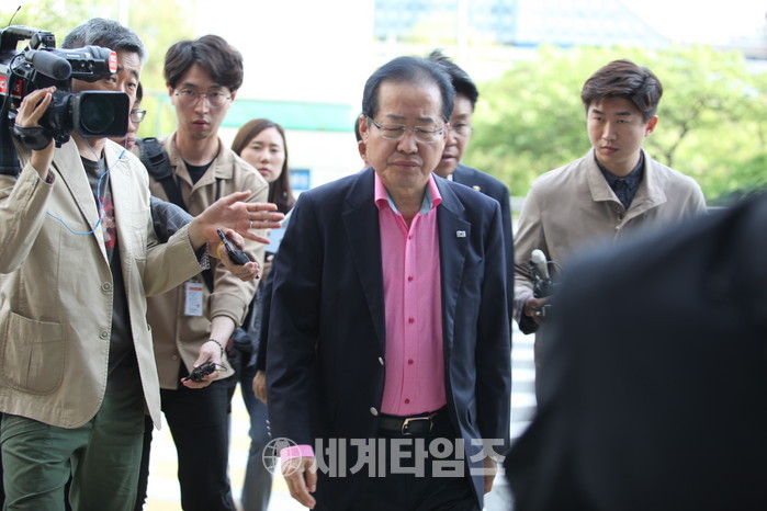 자유한국당 홍준표 대표가 심각한 표정으로 병원 응급실 들어가고있다 사진=이연종기자