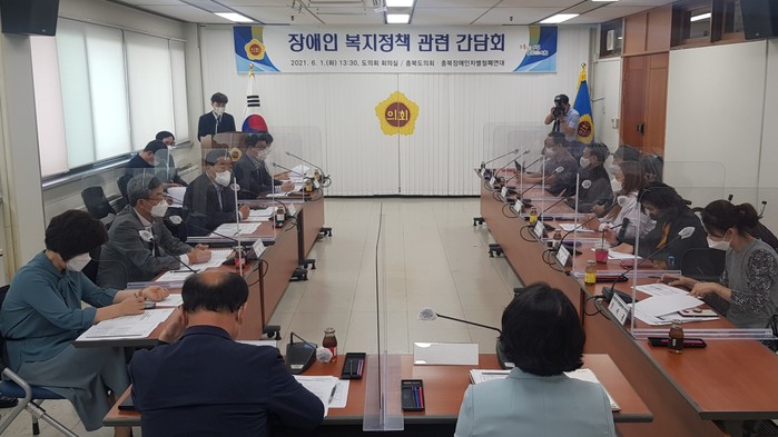 [충북=세계타임즈 이현진 기자] 충북도의회(의장 박문희)는 1일 도의회 회의실에서 충북장애인차별철폐연대(이하 ‘충북장차연’)와 ‘장애인 복지 증진과 지원 방안 모색’을 위한 정책간담회를 가졌다.