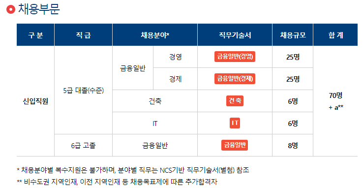 2014년부터 ‘블라인드 채용’을 진행하고 있는 캠코는 국가직무능력표준(NCS)을 기반으로 한 열린·공정·사회형평 채용을 통해 직무능력을 갖춘 우수한 인재를 선발할 계획이다.