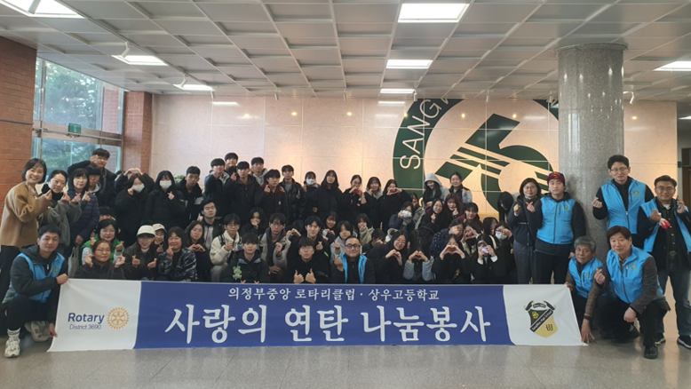 상우고등학교(교장 김영애)는 2025년 11월 19일(수) 지역사회 이웃을 돕기 위한 ‘2025 사랑의 연탄나눔 봉사 프로젝트’를 진행하였다. 이번 봉사활동에는 학생 60명, 지도교사, 학부모회, 의정부중앙로타리클럽, 그리고 의정부시장 배우자 등 총 90명이 함께 참여해 지역사회 연탄 나눔의 의미를 더했다.