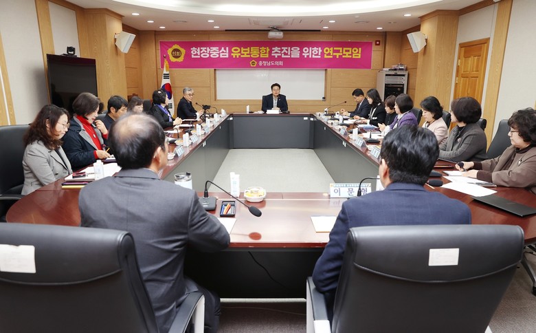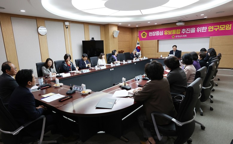 [충남 세계타임즈=백택기 기자] 충남도의회 ‘현장중심 유보통합 추진을 위한 연구모임(대표 신한철)’은 25일 천안교육지원청 상황실에서 제5차 마지막 회의를 개최했다.