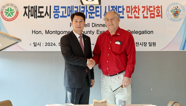 [대전 세계타임즈=이채봉 기자] 대전시의회 이상래 의장은 10일 대전컨벤션센터에서 개최된 몽고메리카운티 사절단과의 만찬 간담회에 참석해 마크 엘리치 몽고메리카운티 시장을 비롯한 사절단 일행의 대전시 방문을 환영했다.