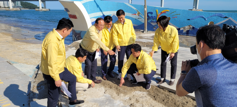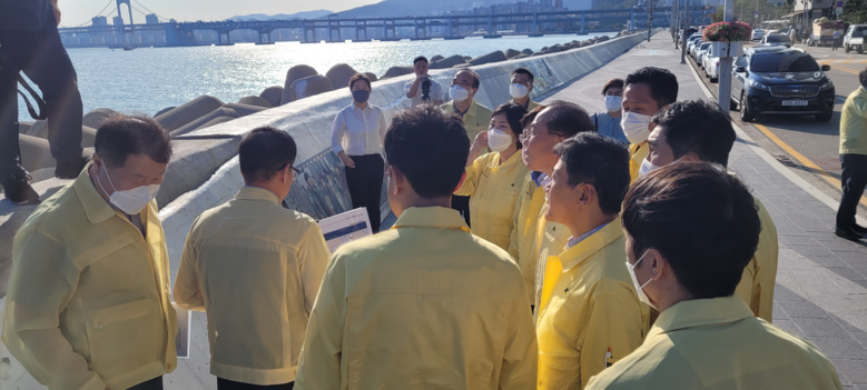 ◎ 월파 피해 입은 민락 수변공원 및 해운대 마린시티 방문해 재해 방지대책 논의
