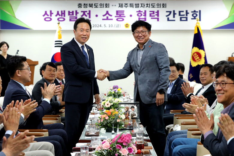 [충북 세계타임즈=이현진 기자] 충북도의회(의장 황영호)는 5월 10일 도의회를 방문한 제주특별자치도의회(의장 김경학)와 상호 교류 증진 및 상생발전을 위한 간담회를 가졌다.