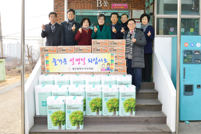 [서구=세계타임즈 한성국 기자] 대구서구의회(의장 조영순)는 1월16일 다가오는 민족 최대의 명절인 설을 맞아 어려운 이웃에 대한 따뜻한 나눔실천을 통한 훈훈한 사회분위기 조성을 위해 사회복지시설을 방문해 온정의 손길을 전했다.