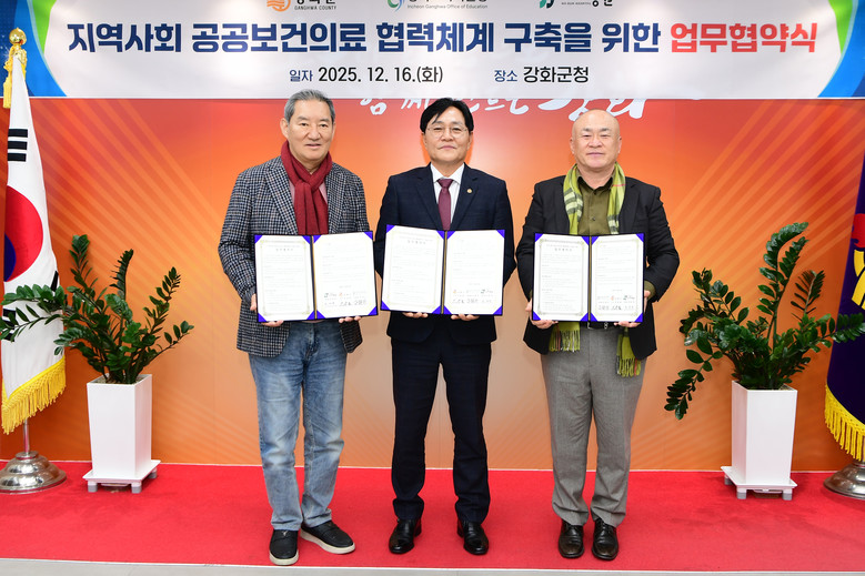 강화군은 지난 16일 인천광역시 강화교육지원청, 인천 서북권 지역책임의료기관 나은병원과 함께 ‘지역사회 공공보건의료 협력체계 구축을 위한 업무협약’을 체결했다.