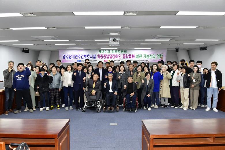 [광주 세계타임즈=손권일 기자] ‘최중증 발달장애인 24시간 통합돌봄 사업’이 장애인주간보호시설 및 장애인들에게 최적의 복지환경 조성과 제공 사업의 성공을 위한 협력의 장이 마련됐다.
