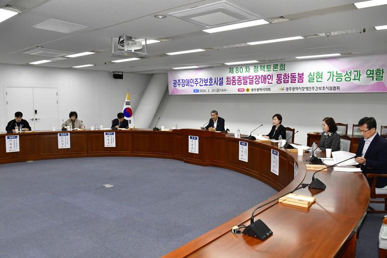 이어서 박영욱 한국장애인주간보호시설협회장, 노미향 시설장, 이계환 종사자, 나금주 광주시발달장애인지원센터장, 남미선 광주시장애인복지과장의 토론이 이어졌다.