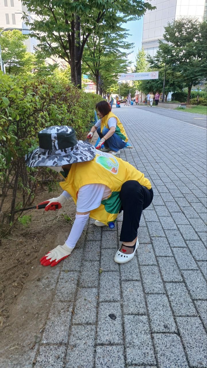 ▲지난달 31일, 자연아푸르자 캠페인을 맞아 봉사자가 발산역 인근 상가 거리를 청소하고 있다.