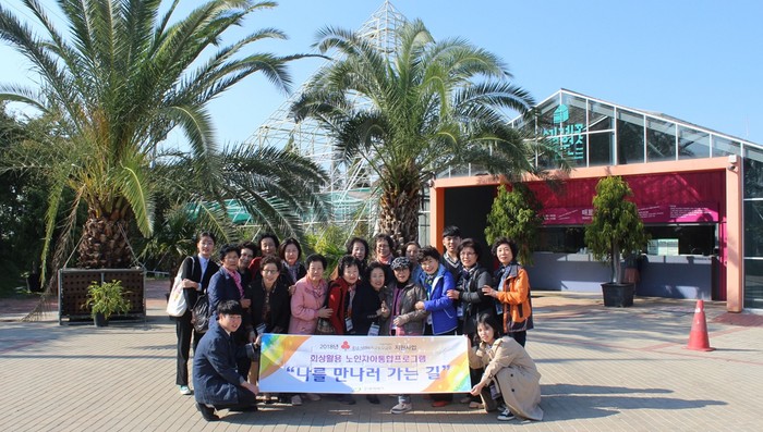 프로그램에 참여하는 17명의 어르신들과 함께 도고면에 위치한 세계꽃식물원에 방문하여 오감을 활용한 꽃 손수건만들기 체험과 식물원 곳곳을 거닐며 꽃과 식물을 감상하였다.