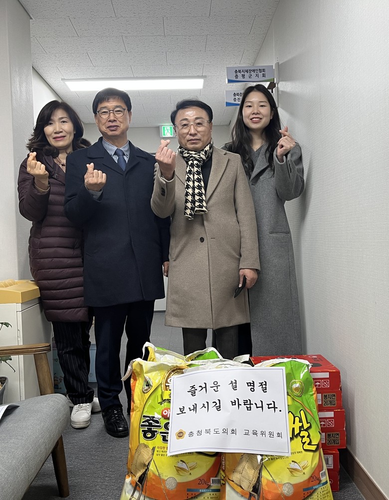 교육위원회는 18일과 19일 이틀간 청주시, 충주시, 옥천군, 증평군 소재 사회복지시설 6개소를 방문해 쌀, 라면, 화장지 등 위문품을 전달하고 시설 관계자들과 입소자들을 격려했다.