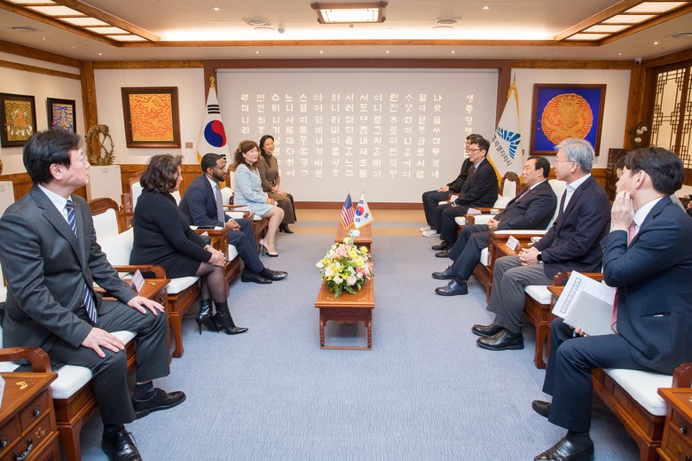 시는 22일 시청을 찾은 미국 LA시티대학 총장을 포함한 LA 지역대학 학군(LA Community College District) 대표단과 한글문화와 대학 간 교류 등에 대해 협력을 다졌다고 밝혔다.
