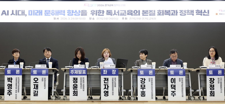 [경기도 세계타임즈=송민수 기자] 전자영 경기도의회 교육행정위원회 위원(더불어민주당, 용인4)이 좌장을 맡은 「AI시대,미래 문해력 향상을 위한 독서교육의 본질 회복과 정책 혁신」 토론회가 03월 24일(화) 경기도의회 대회의실에서 개최됐다.