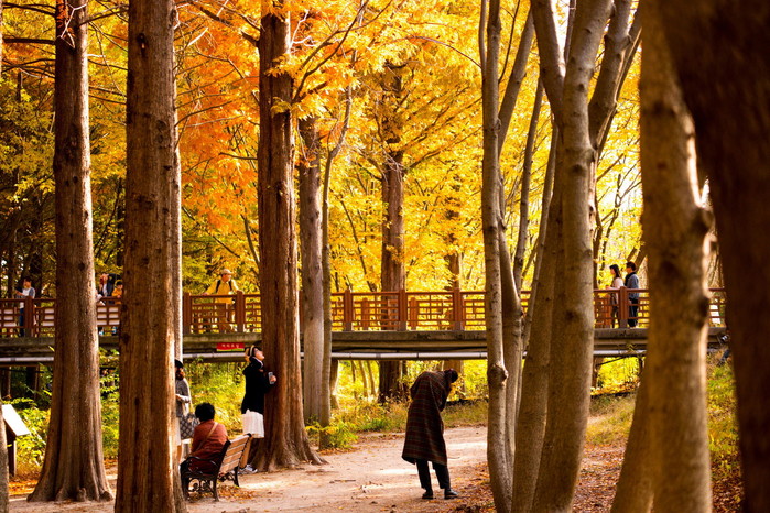첨성대에서 월성 사이에 위치한 ▲계림 숲은 김씨의 시조인 김알지의 신화가 담겨져 있는 전설의 숲이다. 오랜 세월이 느껴지는 느티나무와 고목들이 울창하게 우거져, 하늘을 가릴만큼 빽빽한 단풍이 화려한 색을 뽐내는 곳이다. 단풍 나들이객들에겐 많이 알려지지 않아 여유로운 산책을 즐길 수 있다. 계림에서 이어진 교촌마을에 들어서면 경주의 새로운 명물 월정교가 시선을 사로잡는다. 동궁과 월지에 이은 야경명소로 단풍과 함께 환상적 경관에 취하게 된다.