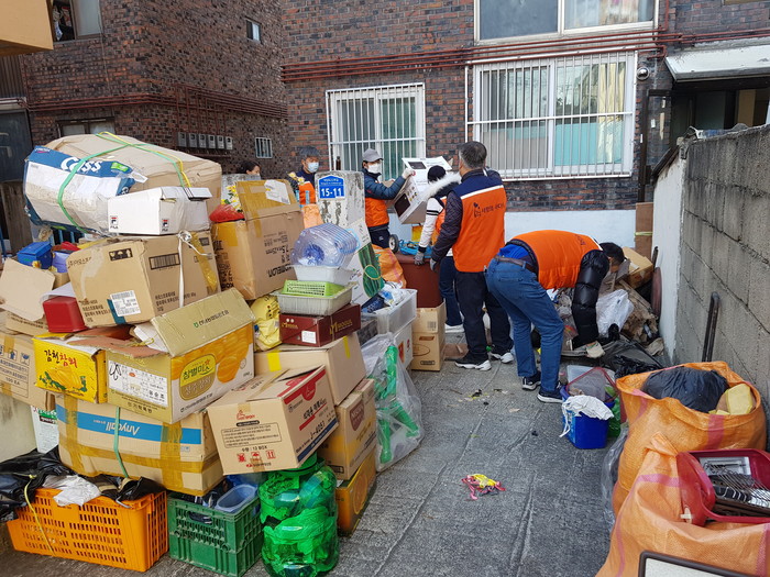 이날 봉사에는 이정제 리더를 비롯해 회원 40명이 추운날씨에도 오전 8시30분부터 오후12시30분까지 약 4시간동안 2층 주택안에 쌓여있는 10톤가량의 집안쓰레기를 치우고 청소를 하였다.