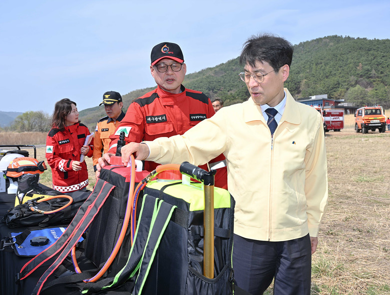 아울러, 대구시가 전국 지방자치단체 최초로 도입한 다목적 산불진화차량과 대구소방안전본부의 험지펌프차 등 첨단 장비를 활용해 현장 대응능력을 실증하고 산불현장통합지휘본부 운영 상황을 시연했다.