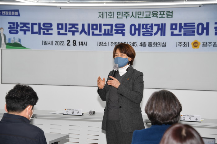 김광란 시의원은 “‘민주시민교육’에 대한 이해와 상이 각각 다르다”면서 “민주시민교육 유관기관과 행정, 시민사회가 2022년을 ‘민주시민교육’ 상에 대한 이해와 합의과정을 만들어가는 해로 설정하고 ‘민주시민교육포럼’을 지속적으로 만들어 갈 필요가 있다”고 말했다.