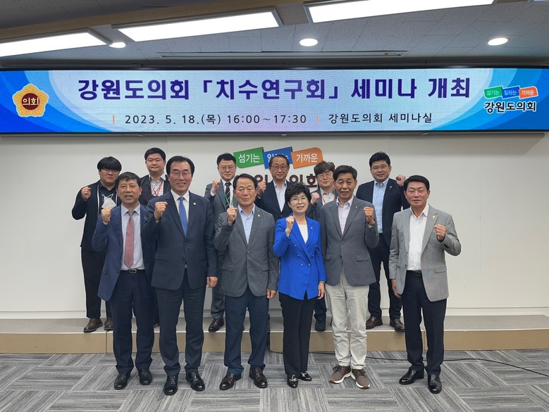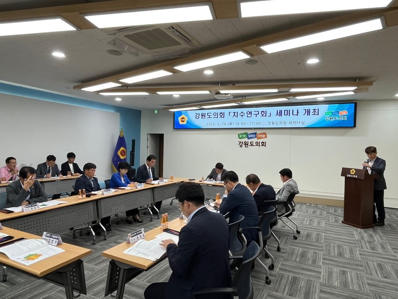 [강원도 세계타임즈=김민석 기자] 강원도의회 치수연구회(회장 윤길로) 위원들은 5월 18일(목) 제319회 임시회 회기 삼일째인 치수연구회 세미나를 강원도의회 세미나실에서 개최, “한강수계관리위원회를 설득할 수 있는 수질개선사업 등의 발굴 모색”에 대하여 세미나를 개최하였다.