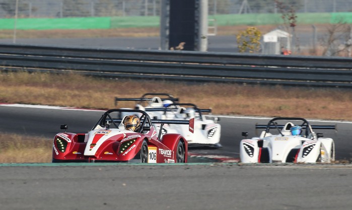 류시원(맨 왼쪽) 팀106 감독이 지난 11월 영암 코리아 인터내셔널 서킷에서 열린 10라운드 경기에서 레이스를 리드하고 있다.