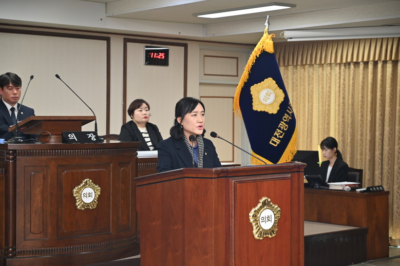 [중구 세계타임즈=이채봉 기자] 대전 중구의회(의장 오은규)는 제264회 임시회 제1차 본회의에서 김선옥 의원이 5분 자유발언을 진행했다고 밝혔다.
