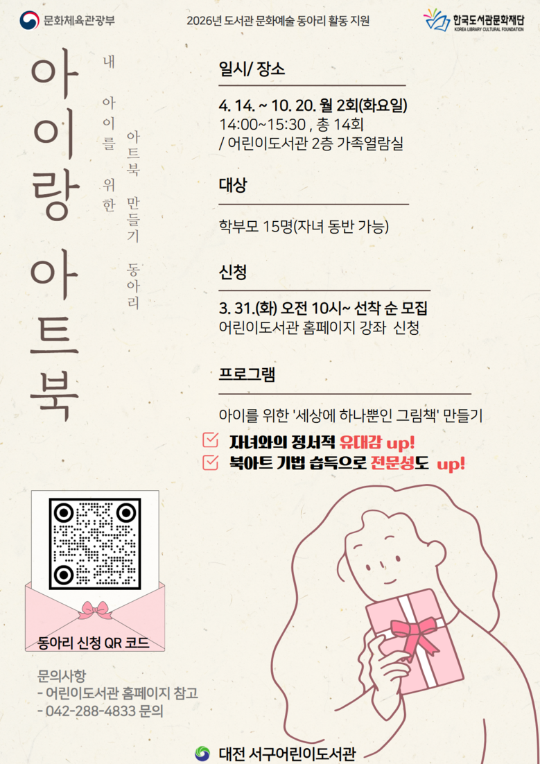 이번 사업은 문화체육관광부가 주최하고 한국도서관문화재단이 주관하는 ‘도서관 문화예술 동아리 활동 지원 사업’의 일환으로, 부모가 직접 만든 책을 아이에게 선물함으로써 자녀와의 정서적 교감을 높이기 위해 마련됐다.