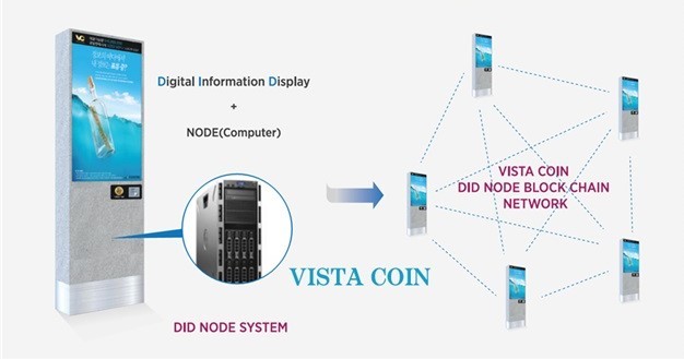 비스타 코인이 채굴되는 과정은 아래와 같다. 본인의 스마트폰에 비스타전자지갑 APP을 다운받은 뒤, 설치되어 있는 VISTA DID(디스플레이 광고 매체 및 키오스크)에서 NFC TAG를 통해 손쉽게 비스타 코인을 획득할 수 있다.
