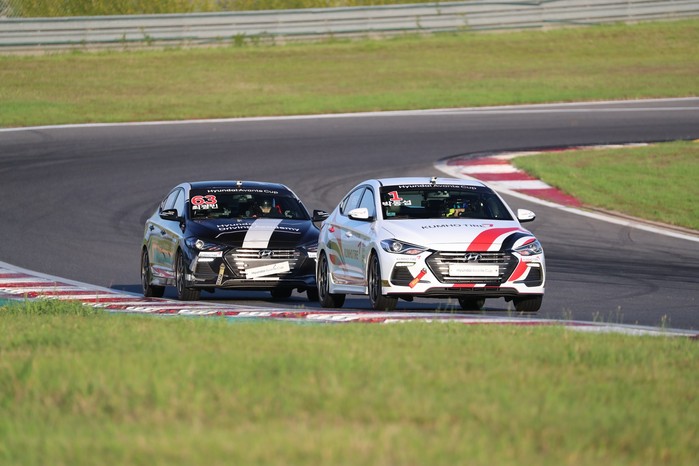 [사진설명] 박동섭(오른쪽)이 코리아 인터내셔널 서킷에서 열린 현대 아반떼컵 마스터즈 레이스 6라운드 결승전에서 최광빈과 접전을 벌이고 있다.