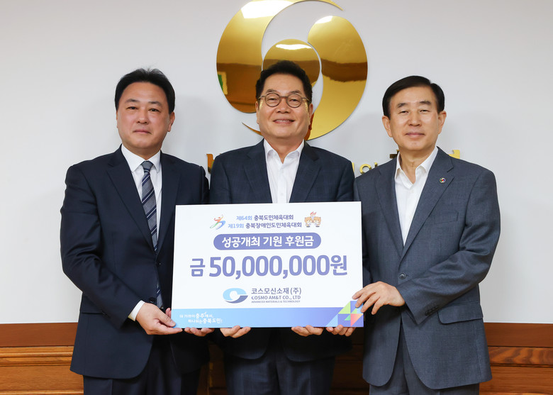 시는 10일‘코스모신소재(주)가 ‘2025년 충북(장애인)도민체육대회’의 성공적인 개최를 기원하며 5천만 원을 충주시체육회에 기탁했다고 밝혔다.
