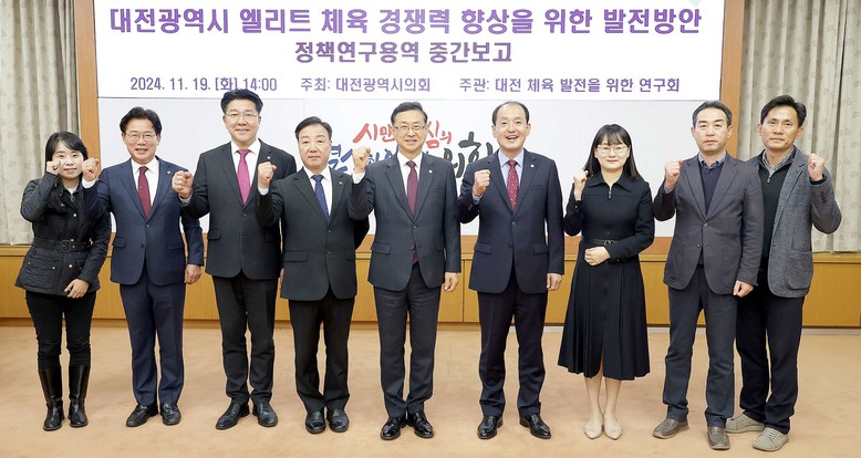 [대전 세계타임즈=이채봉 기자] 대전시의회 「대전 체육 발전을 위한 연구회」(회장 민경배 의원)는 19일 대전시의회 소통실에서 ‘대전광역시 엘리트 체육 경쟁력 향상을 위한 발전 방안’ 연구용역 중간보고회를 열었다.