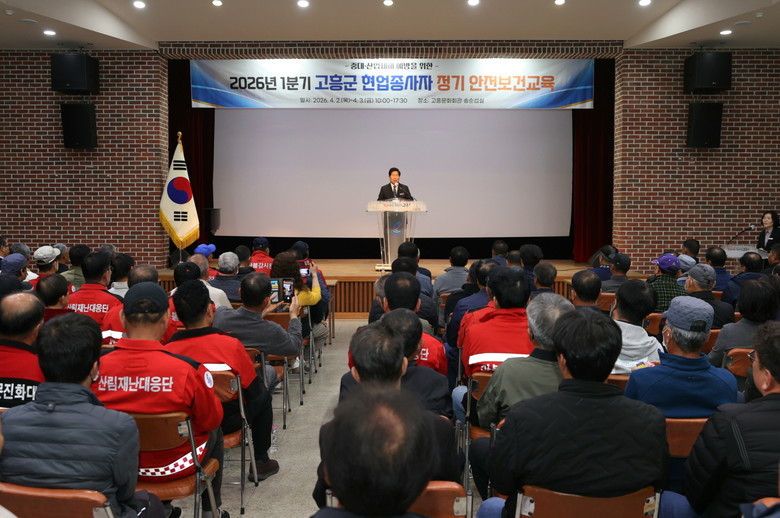 [고흥군 세계타임즈=우덕현 기자] 고흥군(군수 공영민)은 지난 2일부터 3일까지 2일간 고흥문화회관 송순섭실에서 군 소속 현업종사자 266명을 대상으로 ‘2026년 1분기 현업종사자 정기 안전보건교육’을 실시했다고 밝혔다.