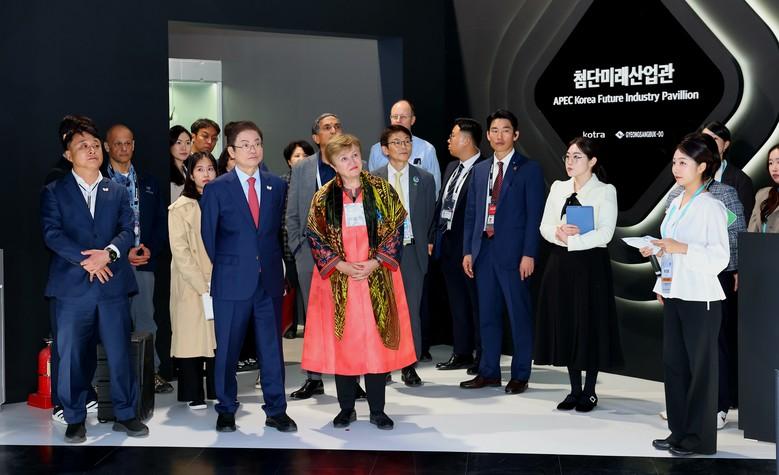 게오르기에바 총재는 31일 APEC 정상회의 본회의 개막 1세션(디지털 협력을 통한 지역 도전 과제 대응 및 공동 번영 방안)에서 특별 기조연설을 하기 위해 경주를 방문했다.