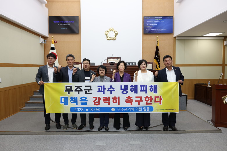 무주군의회는 정부가 실질적인 보상대책을 마련해 과수농가의 생업안정을 도모해야 한다며 ▲천재지변에 의한 영농손실 100% 정부보상 및 근본대책 마련 ▲불합리한 냉해 피해 보험보상율 개선 및 작목별 특성 반영 ▲농작물재해보험 가입시 사과, 포도의 동상해 피해보장을 주 계약 보장으로 명문화할 것을 요구했다.