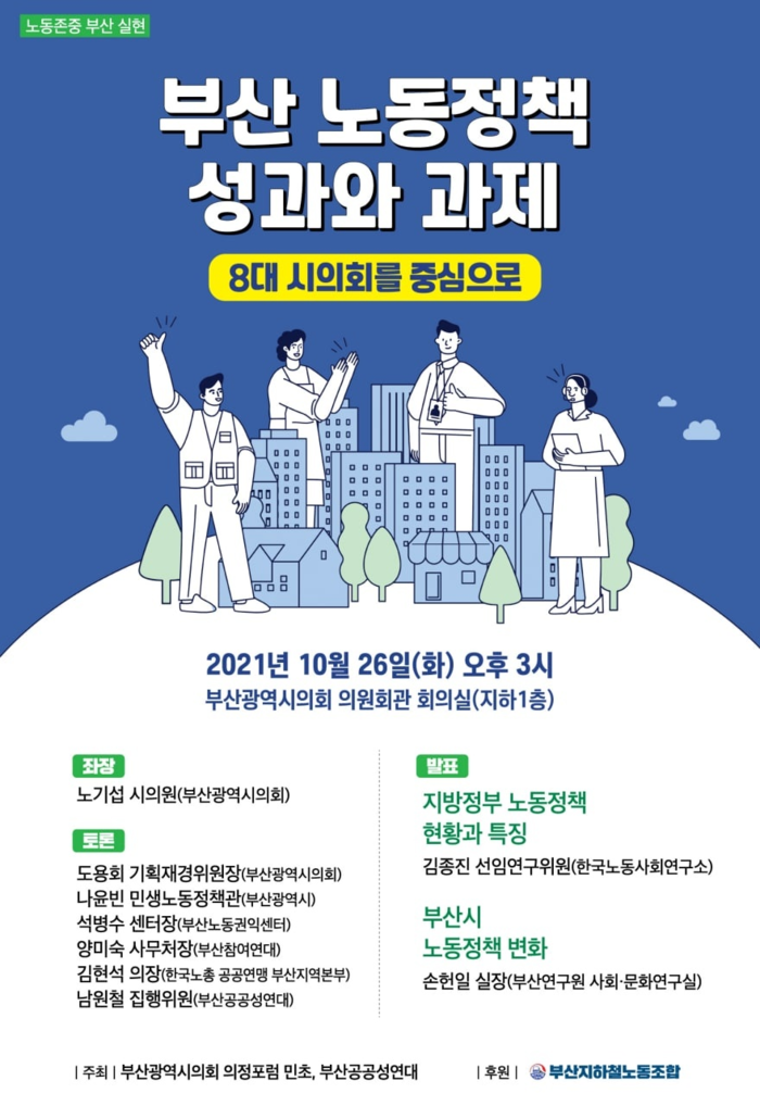 [부산=세계타임즈 이용우 기자] 부산시의회 의정연구단체 ‘민초’와 ‘부산공공성연대’는 10월 26일(화) 오후 3시 부산시의회 의원회관 회의실에서 ‘부산 노동정책 성과와 과제’ 토론회를 개최한다.
