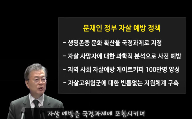 자살문제 해결을 위해 문재인 정부는 집권 당시 ▲생명존중 문화 확산을 국정과제로 지정 ▲자살 사망자에 대한 과학적 분석으로 사전예방 ▲지역 사회 자살예방 게이트키퍼 100만명 양성 ▲자살 고위험군에 대한 빈틈없는 지원체계 구축 등의 정책 등을 내놓았지만, 아직까지 큰 성과는 보이지 않고 있다. 더군다나 여당 소속의 정치인이 극단적 선택을 했다는 소식에 해당 정책이 제대로 시행되고 있는 지조차도 의문이 든다. 정부는 정말 자살문제에 대해 ‘심각성’을 가지고 해결할 의지가 있는 것인가도 말이다.