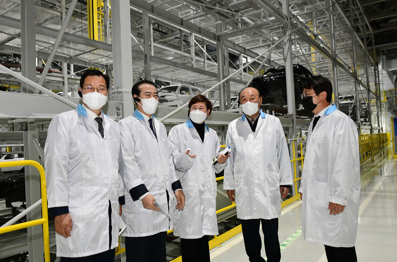 이날 현장방문은 전국 최초의 상생형 지역 일자리인 GGM이 지난달 15일 누적 생산 5만대를 돌파한 것을 기념하면서 향후 생산성 제고를 위한 현장의 목소리를 듣기 위해 마련됐다.