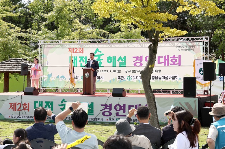[대전 세계타임즈=이채봉 기자] 대전시의회 조원휘 의장은 28일 한밭수목원에서 열린 ‘2024 숲해설 경연대회’에 참석해 자연의 소중함과 가치 전달을 위한 숲해설가 활동에 감사를 전하며, “대전시의회는 앞으로도 숲해설 활성화와 숲의 보존을 위해 관심과 지원을 아끼지 않겠다”고 말했다.