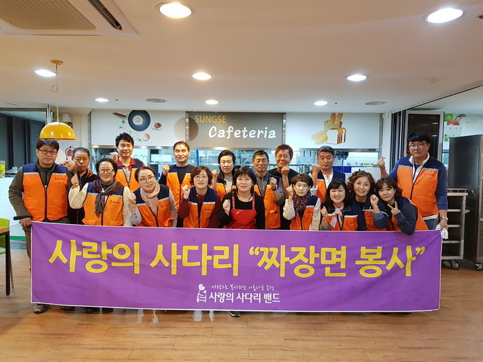 [대전=세계타임즈 이장성 기자] 다양한 봉사활동을 꾸준하게 실천하고 있는 SNS 대전시봉사단체 사단법인 사랑의 사다리(리더 이정제) 밴드는 29일 오후5시, 유성구 용계동에 위치한 중증장애인거주시설인 성세재활원(원장 김원식)에서짜장면 봉사로 우리 사회의 따뜻한 사랑을 실천하였다.