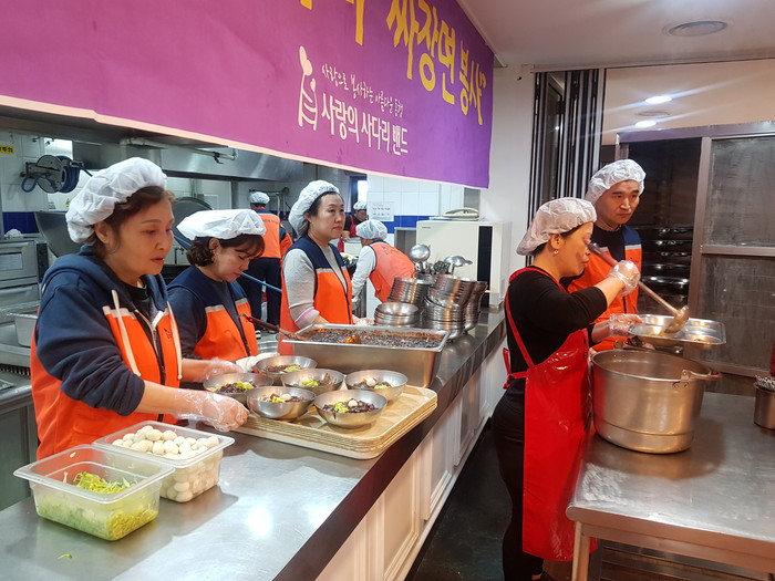 이날 짜장면 봉사에는 유희자 이사를 비롯한 회원 20명이 약3시간동안 짜장면을 만들었다.