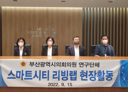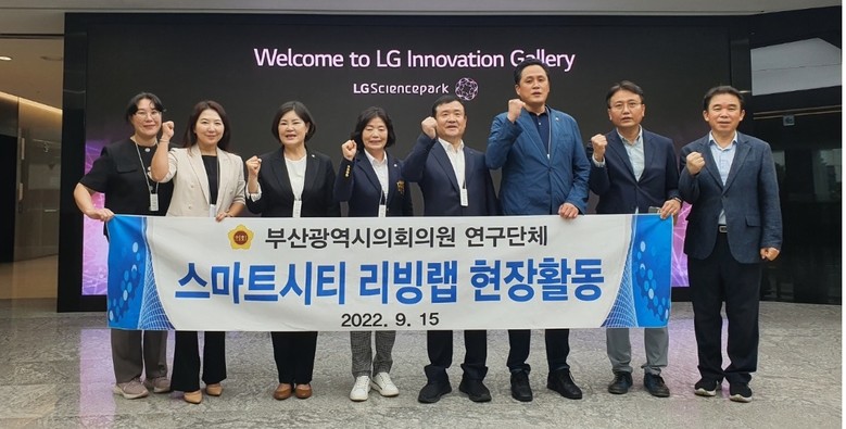 [부산 세계타임즈=이용우 기자] 제9대 부산광역시의회의원 연구단체인‘스마트시티 리빙랩 연구회’가 오늘(15일), 서울 강서구 LG사이언스파크를 방문해 미래기술과 핵심 주력제품이 집약된 그룹 전시장인 LG이노베이션 갤러리를 참관하였다.