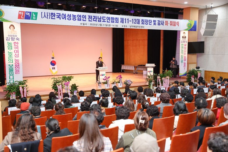 [전남 세계타임즈=우덕현 기자] 전라남도의회 김태균 의장은 2월 21일 오후 2시 남악복합주민센터에서 개최된 ‘한국여성농업인 전라남도연합회장 이‧취임식’에 참석해 축하와 함께 “여성농업인들이 한국의 농업을 책임지고 가야 한다.”고 강조했다.