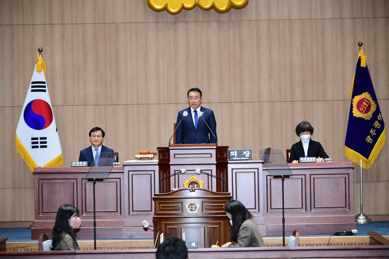 한편, 이날 본회의에서는 ▲최지현 의원, ‘자전거이용 활성화로 탄소중립 이뤄내자’ ▲홍기월 의원, ‘광주 장애인 지원의 현주소’ ▲심창욱 의원, ‘용역 관리·감독 철저히 해야한다’▲김나윤 의원, ‘답정너 용역 필요한가’라는 주제로 5분 자유발언이 이뤄졌다.