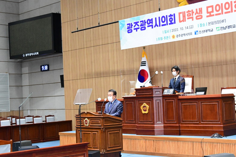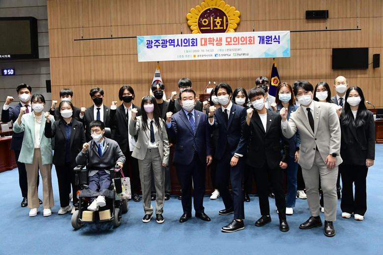 한편, 광주광역시의회는 작년 9월에 조선대학교와 대학생 모의의회 운영을 위한 업무협약을 체결했으며 올해는 모의의회 참가 대상을 전남대학교까지 확대하여 운영하고 있고, 11월 중에 본회의장에서 대학생 모의의회 본회의를 개최할 예정이다.
