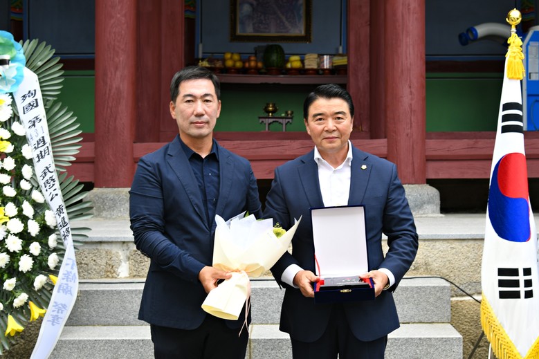 [남원시=세계타임즈 신승민 기자] 남원시의회 김한수 부의장은 지역발전과 황진장군 선양에 기여한 공로로 감사패를 수상했다. 김부의장은 지난 1일 제431주기 무민공 황진장군부조묘 제향 행사에서 스마트팜 유치 등 지역발전을 앞당기고 불멸의 영웅 황진장군의 업적을 널리 선양한 공로를 인정받아 감사패를 받았다.