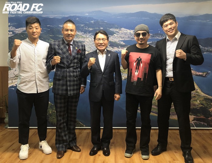 [세계타임즈 김인수기자] ROAD FC 김대환대표와 박상민부대표, 이향수 ROAD FC 여수 대회장은 14일 여수 시청에서 권오봉 여수 시장과 만나 ROAD FC 여수 대회 개최를 확정지었다.