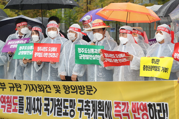 또한 충청권 4개 광역시도가 건의한 충청권광역철도망에서 청주의 도심을 통과하는 노선을 일방적으로 빼고 광역철도의 요건을 무시하면서 기존의 충북선을 고집한 것에 대하여 실망을 넘어서 강력히 분노한다.