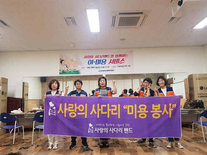 대전시체육재활원 박순용 원장은 “매월 1회 사랑의 사다리 밴드에서 미용봉사를 지원해주어서 감사하다.”고 말했다.