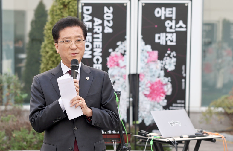 [대전 세계타임즈=이채봉 기자] 대전시의회 조원휘 의장은 31일 ‘2024 아티언스 대전 결과보고전’ 열리는 대전예술가의집을 찾아 “예술, 과학 융복합 창작의 새 지평을 열고 있는 ‘2024 아티언스 대전’을 계기로 과학도시 대전의 정체성이 더욱 굳건해지기를 바란다”고 전하며 전시 개최를 성원했다.