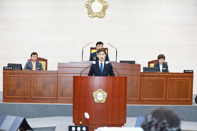 하성동 의장은 개회사에서 “군민의 대의기관으로서 의욕적인 의정활동을 다짐했었던 초심을 다잡고 전반기 의회를 무사히 잘 마무리할 수 있도록 모든 안건을 신중하게 검토하고 모두가 협력하고 소통하기를 바란다.”며 당부하고, “결산 및 예비비 지출승인안 심사를 통해 예산이 당초 목적대로 집행되었는지 깊이 있는 심사를 부탁드리며, 주요 정책과 사업에 군민들의 뜻이 충분히 반영될 수 있도록 건설적인 대안을 함께 제시하여 주시기 바란다.”고 전했다.